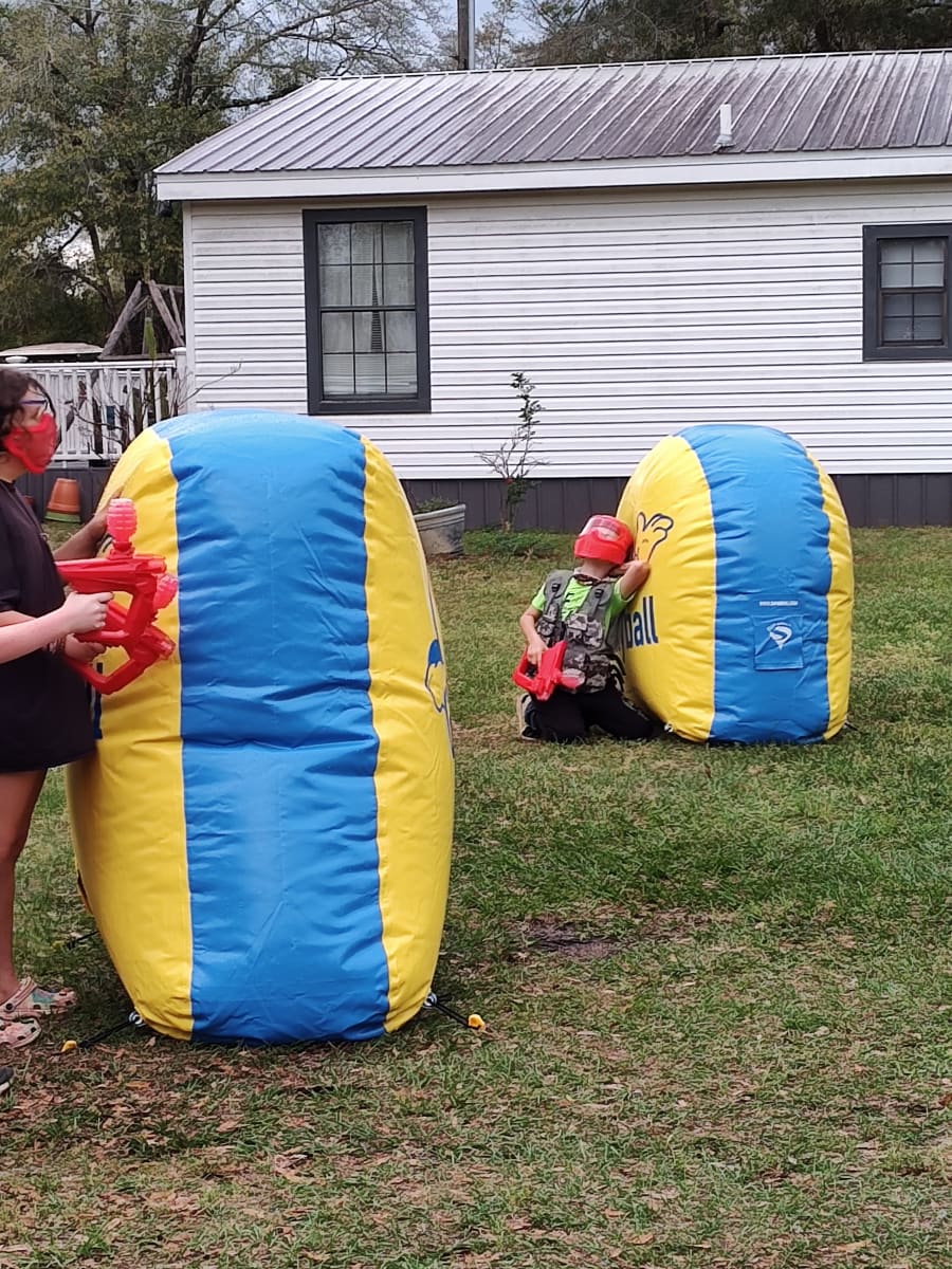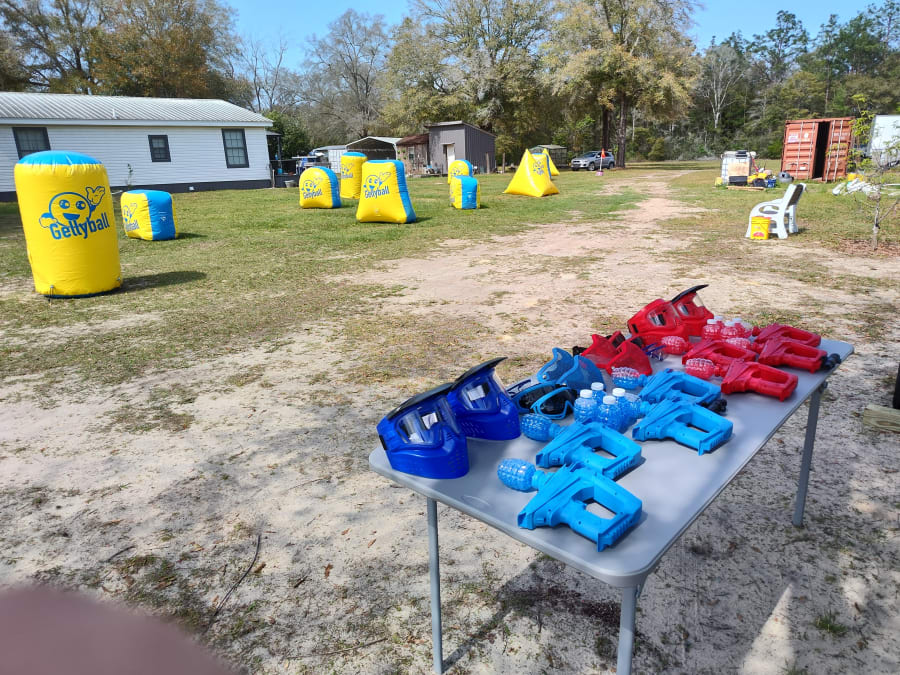 Gelly ball arcade can be an add on to this booking, UV reactive pellets if you want to have some black light fun in the evening are an option, just text/call us 850-830-4636 we will create a custom experience you and your friends will never forget.