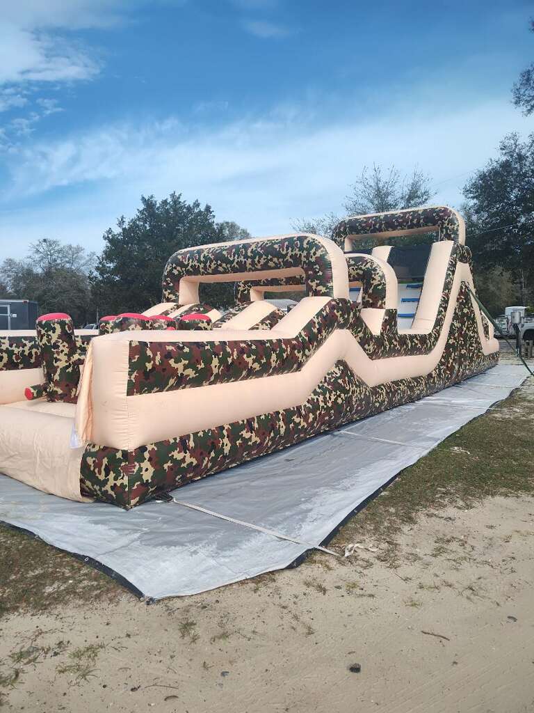 Measuring a whopping 40' x 12' x 15' (LWH), and needing an area of 60' x 20' x 17', this is one of our largest and most exciting units! With two spacious lanes, guests can race side by side, conquering obstacles that foster friendly rivalry and endless laughter. The Boot Camp Short is the larger half of our iconic boot camp course, featuring an exhilarating slide that delivers a thrilling finish for every challenger. Please note: this version does not include the rope swing or smaller end, making it accessible for a wide range of participants and ideal for younger obstacle course adventurers. 🎉🧗♀️