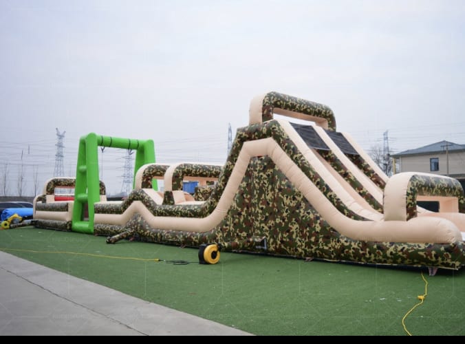 Ready to turn up the excitement at your next gathering? Boot Camp is the ultimate way to bring challenge, fun, and friendly competition to birthday parties, corporate team-building events, school carnivals, and community festivals! This inflatable obstacle course is one of our biggest and most thrilling units, measuring a whopping 76'x12'x15'—perfect for all ages and any occasion. ๐