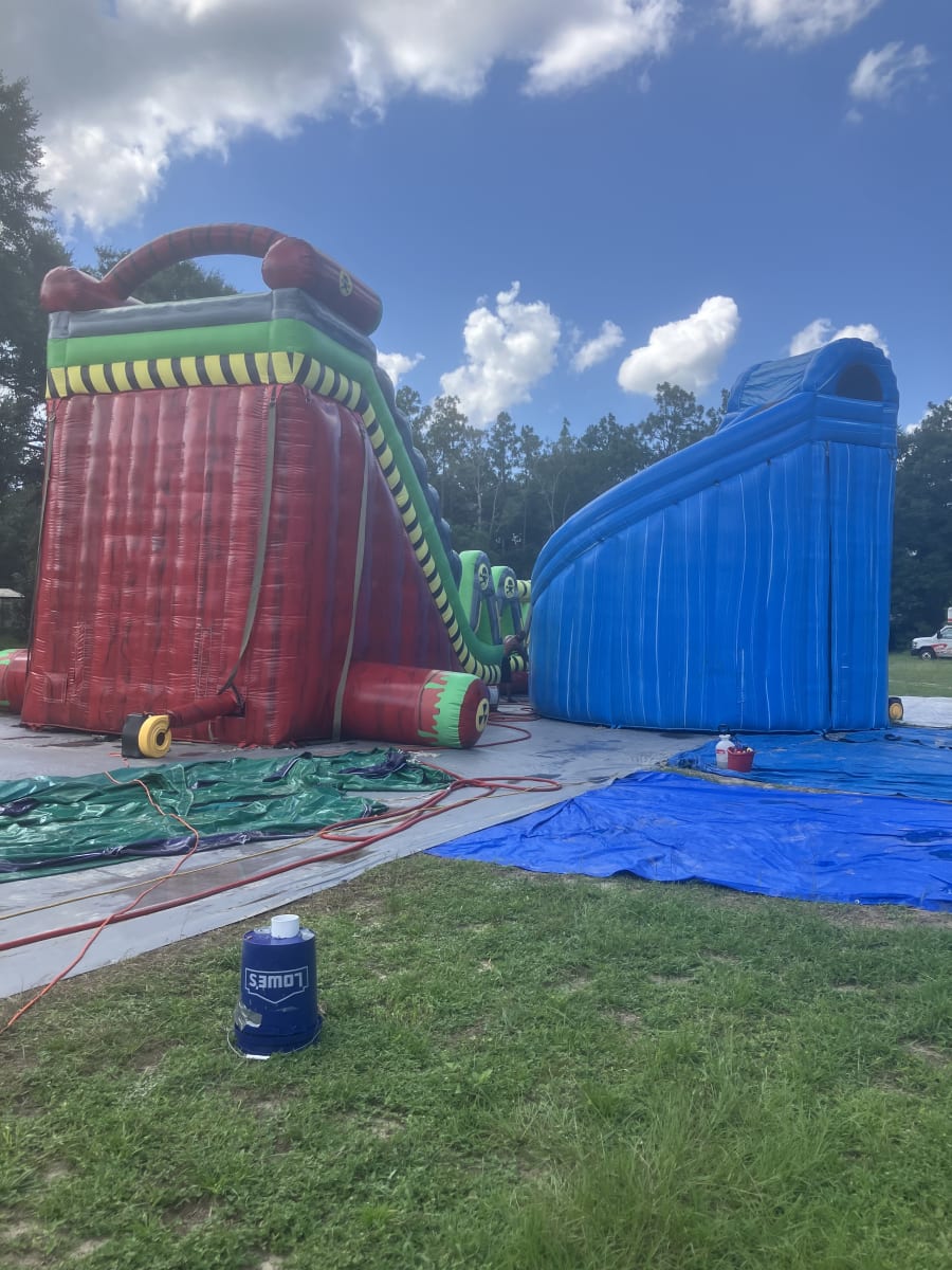 Crossover to the FUN s(l)ide on this 22 foot tall crisscrossing inflatable attraction. Perfect for a neighborhood backyard, or your next function it measures 28ftx24ftx22ft (lwh). Due to the advanced height of this slide, we need a bit of extra muscle to set it up and take it down, requiring an additional surcharge of $50.