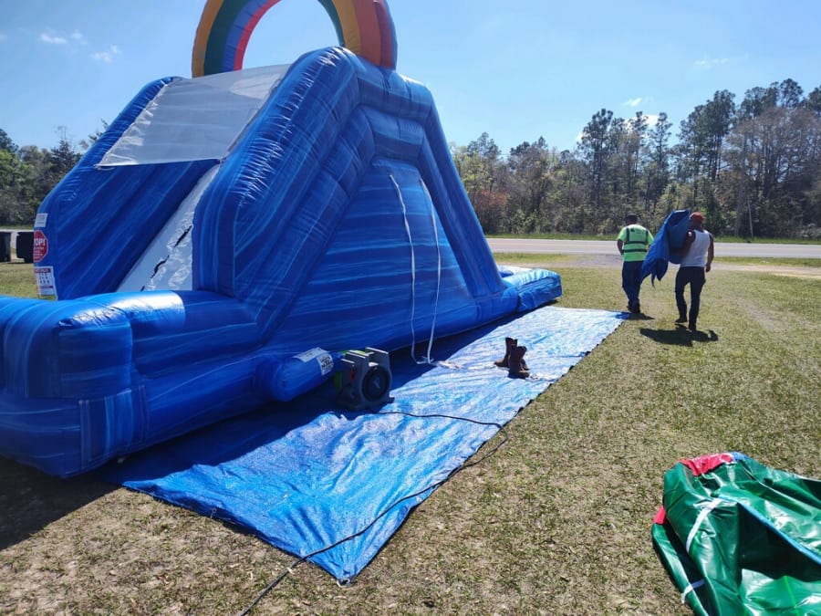 It's also about 40% less, to rent by the day, and only 4 feet shorter than the more expensive 18-19 foot slides. At just 12x32x15 and requiring 15x40x16 to set up, its still sure to wow little ones.