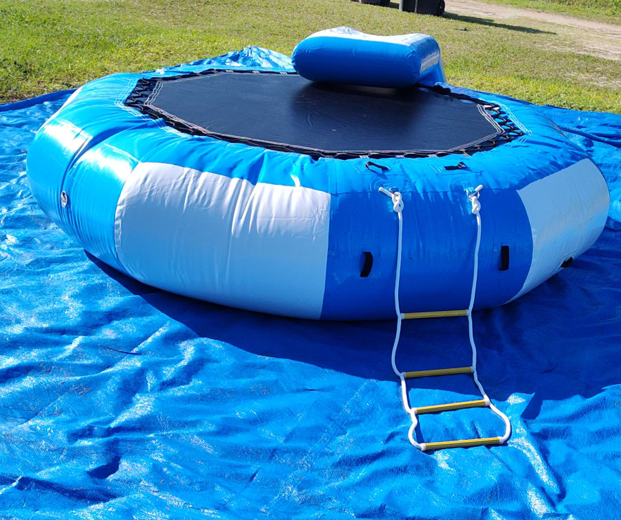 Water trampolines are only to be used on the water, all users should wear life vests and be supervised by an adult. Life vest is a precaution, if one or more person is on the trampoline and they make head to head contact, one or both persons could loose continuousness. It is the responsibility of the lessee (renter) to ensure the safety of users while in possession of trampoline. Damage charges will apply for obvious use on land.
