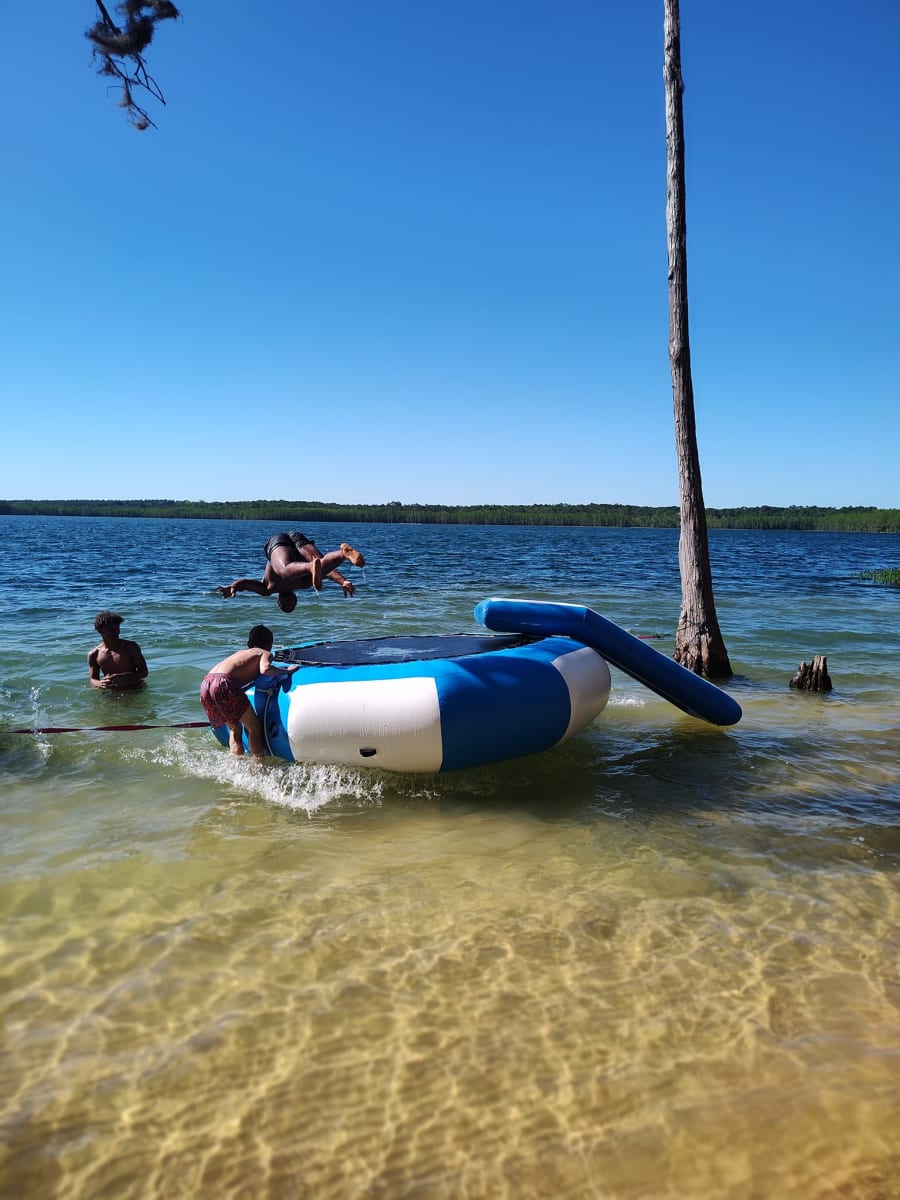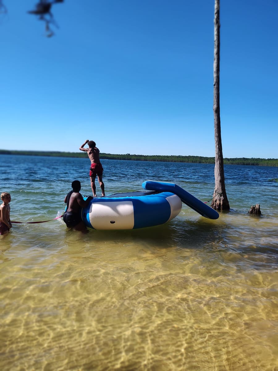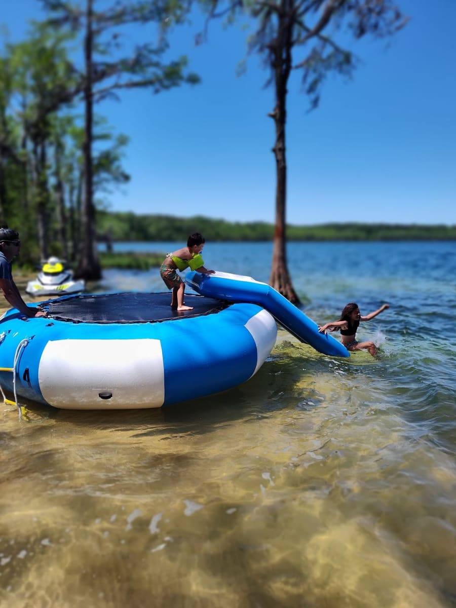 Our NEW water trampoline is perfect to keep all the kids occupied. No more complaints of "I'm bored". You get to enjoy the great out doors, while the youngsters have hours of fun.