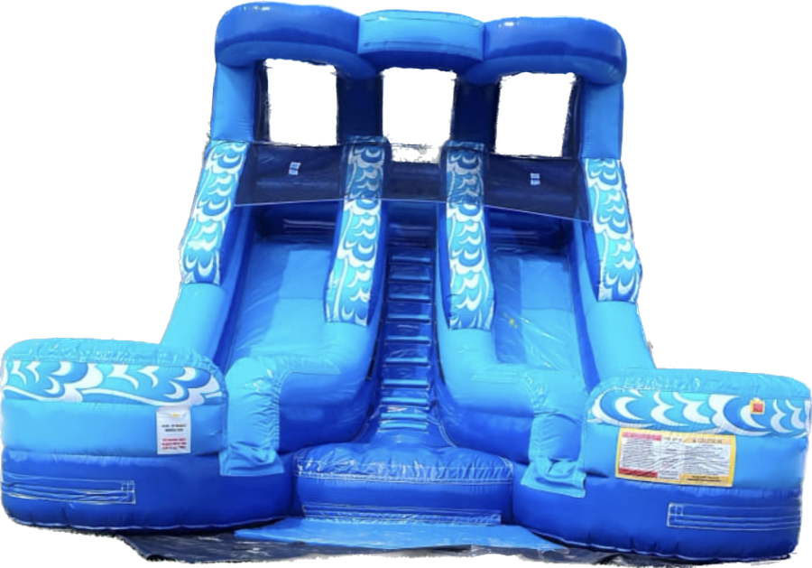 With both inflatables it'll be like having a water park in your back yard! Double Splash is a double slide, letting you race and make waves with your friends, cross-over is one of our newer slides with more twists and turns than the rest! Both slides are appropriate for all ages and will entertain your whole crew.