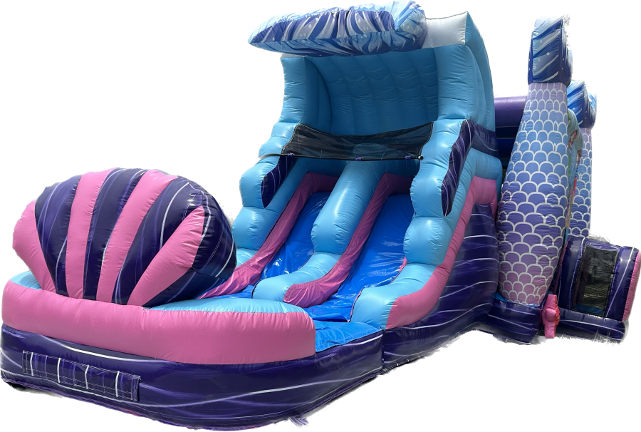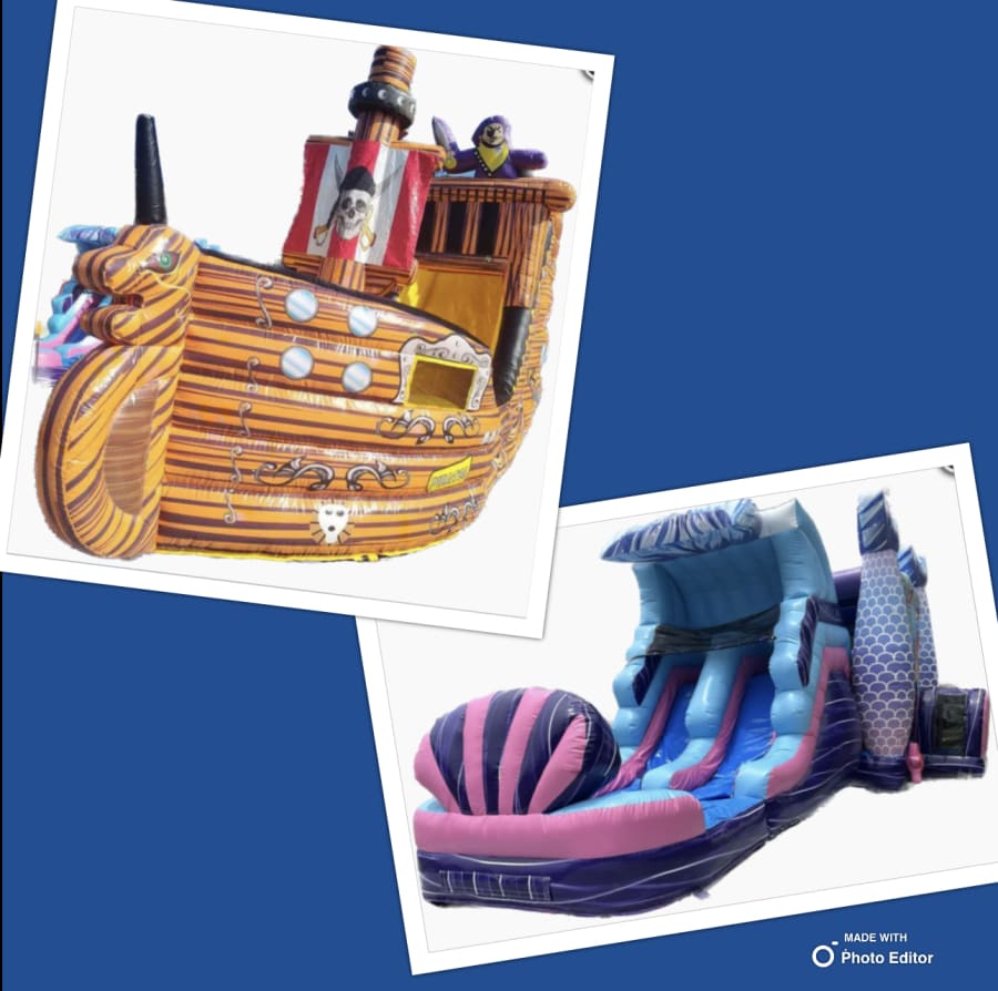 Pirates and Mermaids can splash around together or have a grotto and a ship to themselves, between two units you've got a bounce house, and three slides. Both inflatables are meant for use with water and will keep your little adventurers splashing till the tide comes in.