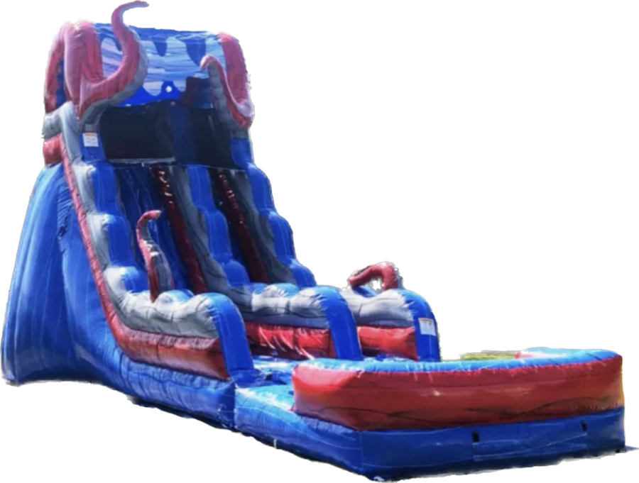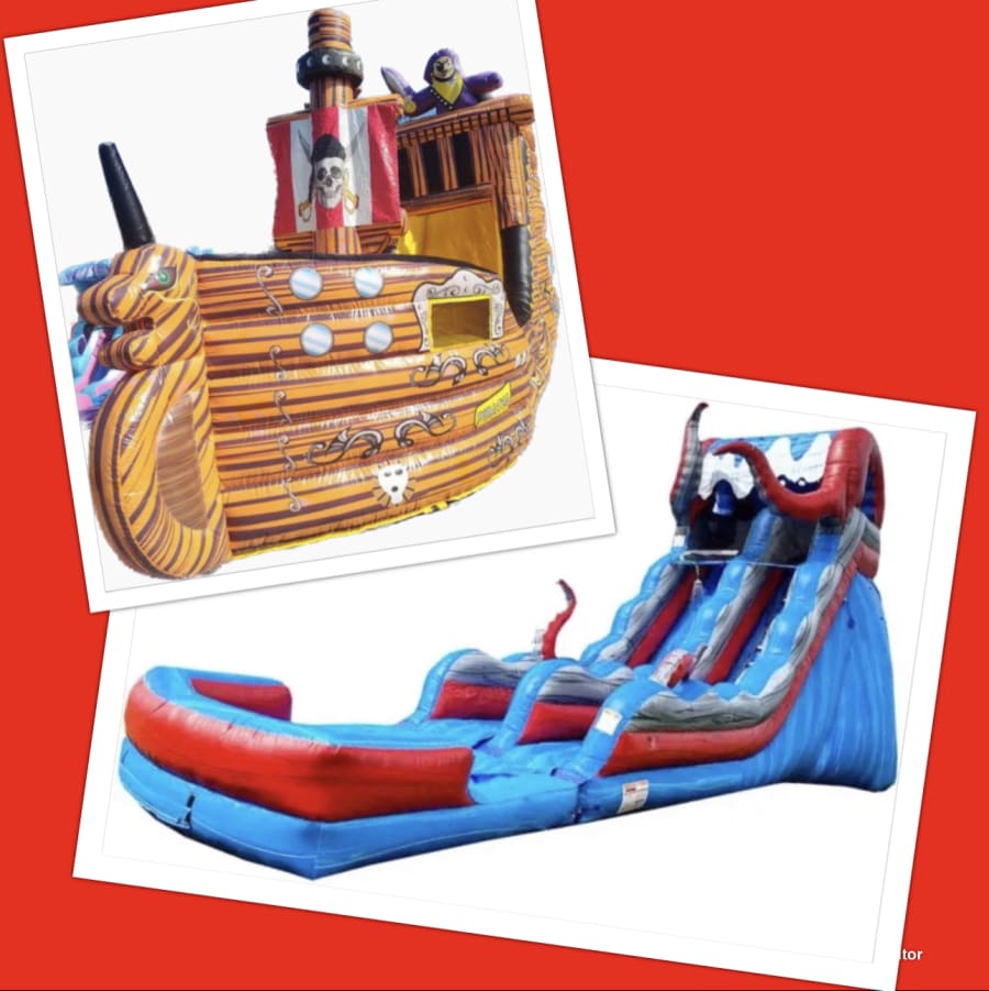 Will Peg Leg Pete, or the Kraken prevail.. watch the battle ensue from your own porch. Both slides are perfect for all age groups and will let little pirates and big sea monsters slide and splash into fun. our smallest pirate ship and largest sea monster slide come together for an ocean themed package.
