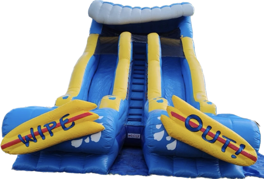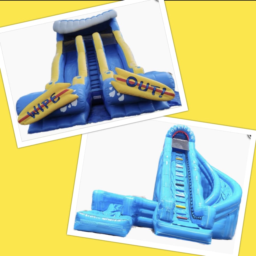 Two of our more exciting water slides, one with twists and turns and one to enhance the crash and splash! Two of these together will make your yard feel like a personal waterpark. Crossover will allow you to slide under your guests as you ascend the corkscrew slide, and Wipe Out is perfect for racing and meant to create mega splashes as you wipe out in the splash pools at the bottom.